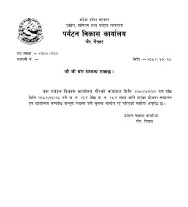 पर्यटन विकास कार्यालय, गौरले यस सम्बन्धमा थप जानकारी आवश्यक परे आधिकारिक माध्यममार्फत जानकारी गराइने समेत जनाएको छ ।